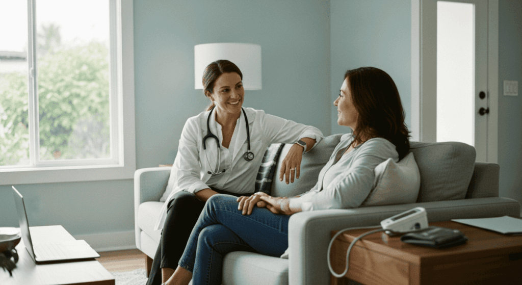 Seniors gain longer visits and focused monitoring of ongoing conditions. The doctor reviews medications, checks progress, and updates treatment plans to prevent complications. This consistent care supports comfort, safety, and long-term health.